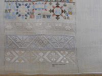 Here is the continued progress on Margret Gatis - I am going back to the bands I had skipped over either because they were simple cross stitch bands (good to work on when tired) or because they were bands that required some thought.